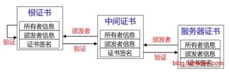 服务器返回给客户端的信息中包含自己的证书,这个证书上有自己的网站的域名,以及IP信息,以及该证书的颁发者信息。 浏览器获取到该证书后就会到操作系统中寻找颁发者的证书,如果颁发者的证书存在,而且颁发者证明了证书有效,那么该证书就有效的。如果颁发证书不存在,或者颁发证书无法证明证书有效,那么该证书就是无效的。