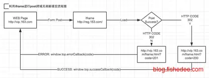 a.qq.com用隐形的form来post数据,form的action设置为b.qq.com,然后后台执行完数据后,执行302跳转,从而将数据递回给a.qq.com。注意:可以跨任意域名,可以是get或post请求,而且需要后台配合。