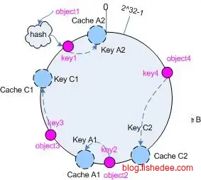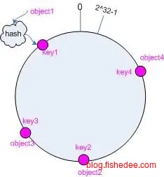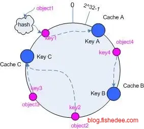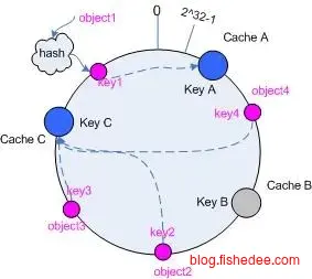 每台机器在环上任意取三个点,然后key以顺时针的方式在环上找到的第一个节点作为该节点的哈希值。
