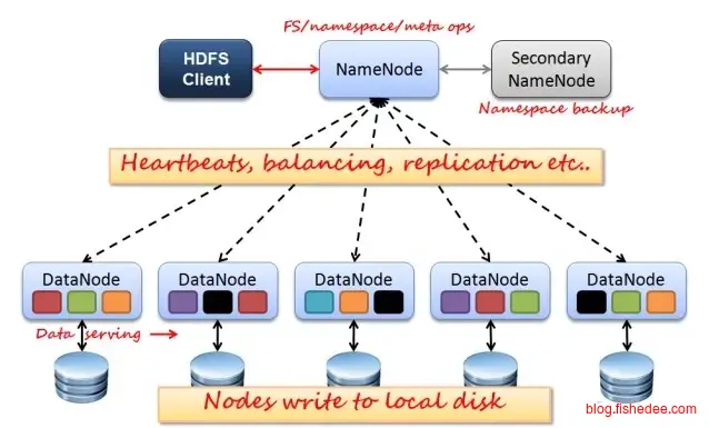 hdfs中采用了一致性哈希+数据库的方式做二级映射,数据存放在namenode与datanode两个位置,namenode存放数据的meta列表,即datanode的块数,与每块所在的机器位置,而datanode则存放数据的具体信息。当需要寻找key所在的数据时,先用一致性哈希来寻找key所在的namenode,然后在namenode中的数据库返回该key的datanode信息,再到datanode指定的机器取出来data,合并起来即可。