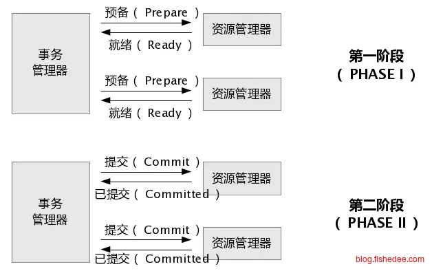 如果在某些情况下,确实需要保证多个操作是同时操作,而且是保证事务一致性怎么办。好了,只能使用大杀器,真正意义上的分布式事务,两阶段提交协议。
