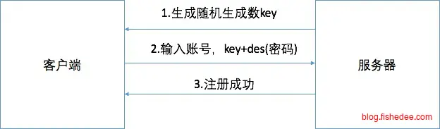 启动后,服务器返回随机生成数key,客户端以key和密码在des加密,服务器获取后用这个key做des解密就可以了。嗯,这种办法也是一样的忧伤,因为加密的key在线上传递的,路由器获取数据后,密文数据和key数据后,就可以做一次本地解密了。破解难度稍大,但仍然不难。