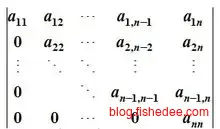 \[ A = \begin{bmatrix} a_{11} & a_{12} & \cdots & a_{1n} \\ a_{21} & a_{22} & \cdots & a_{2n} \\ \cdots & \cdots & & \cdots \\ a_{n1} & a_{n2} & \cdots & a_{nn} \\ \end{bmatrix} \]
