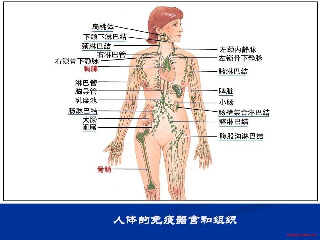 淋巴结是遍布全身的淋巴细胞聚集地,例如有下颌淋巴结,腋淋巴结,肠淋巴结,肠壁淋巴结,腹股沟淋巴结等等,一旦淋巴结附近出现有害物质,淋巴结就会产生淋巴因子和抗体对抗这些有害物质。