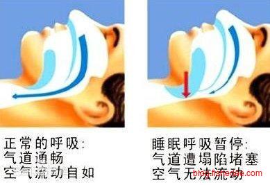 睡眠呼吸暂停综合症是在连续7h睡眠中发生30次以上的呼吸暂停,而引起慢性低氧血症及高碳酸血症的临床综合征。主要原因有两个,喉咙附近的软组织松弛(肥胖、呼吸道结构狭窄、年纪大肌肉松弛、扁桃腺增生、下颚短小,或长期抽烟导致呼吸道水肿等等)而造成上呼吸道阻塞,或者是呼吸中枢神经曾经受到中风及创伤等损害而受到障碍,不能正常传达呼吸的指令引致睡眠呼吸机能失调。