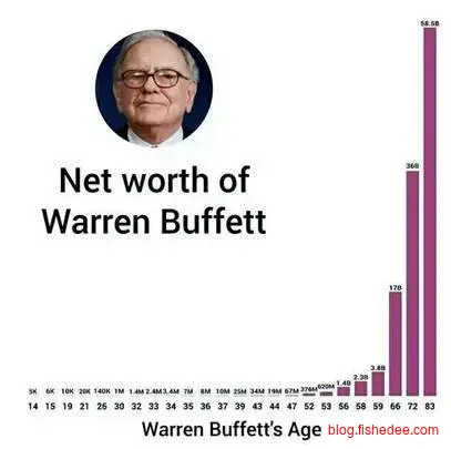 我认为,比起学习那些年纪轻轻就能风风光光的成功史而言,股神巴菲特的人生才是我们更应该追求的。他2016年时的身家是741亿美元,位于全球富豪榜的第二名,这一年他85岁。令人惊讶的是,他47岁根本一点都不富有,只有区区的6700万身家而已(以3%的通胀率推算,大概相当于今天的3亿美金,全球富豪榜前百名都进不了)。换句话说,他99%的财富都是来自于他47岁以后才挣到的。而实现这么巨大财富的关键在于——复利,他的财富能以平均每年20%的收益率在增长。