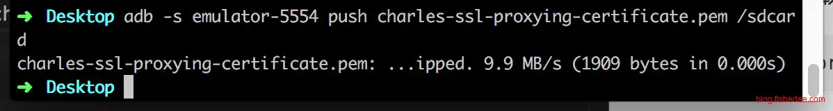 adb -s emulator-5554 push charles-ssl-proxying-certificate.pem /sdcard传送根证书到sdcard的目录