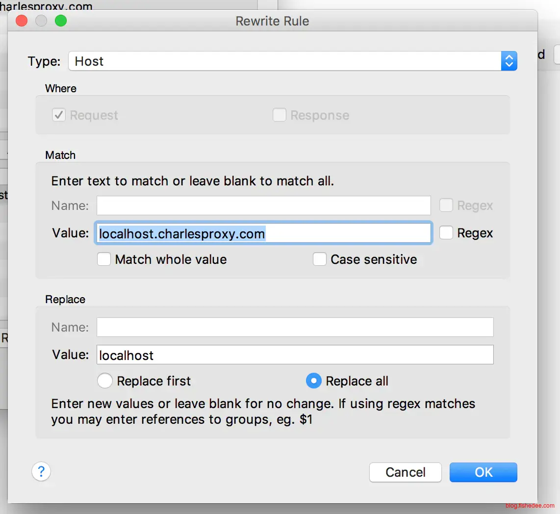 然后访问的时候把地址都改成localhost.charlesproxy.com就行了
