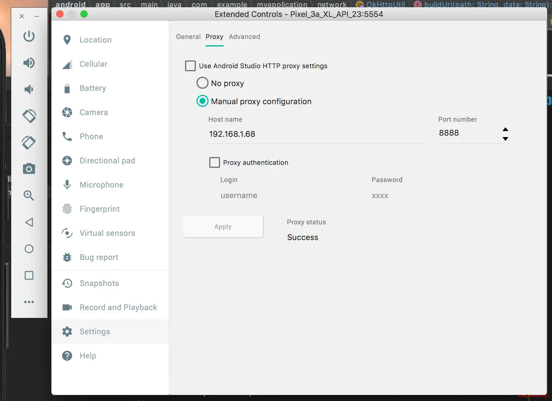对于模拟器,可以用Settings,Proxy,Manual来手动设置代理