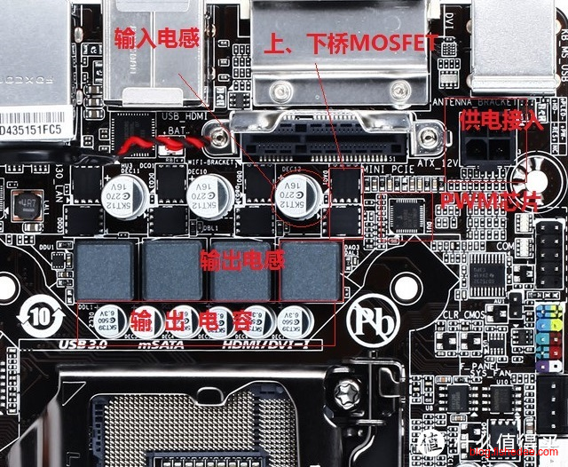 - CPU供电,与CPU通信都比华硕好一点。每相=2组MOSFET+1个电感+1个电容,