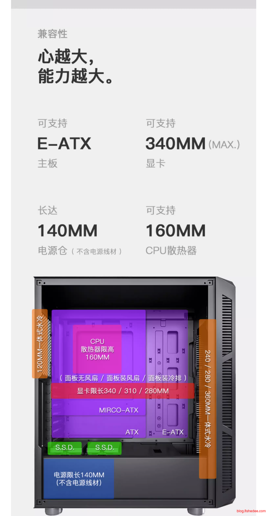 - 散热器高度,160mm的兼容性比较好,有些机箱只支持155mm