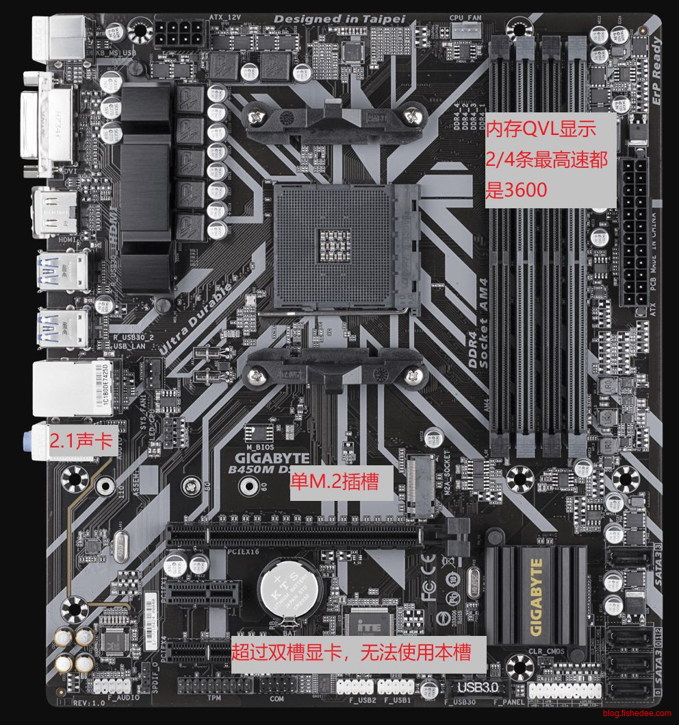 B450M DS3H (共2个风扇口),技嘉牌子,显然的也是并联电感设计,所以和TUF B450M Gaming Pro一样的供电设计。