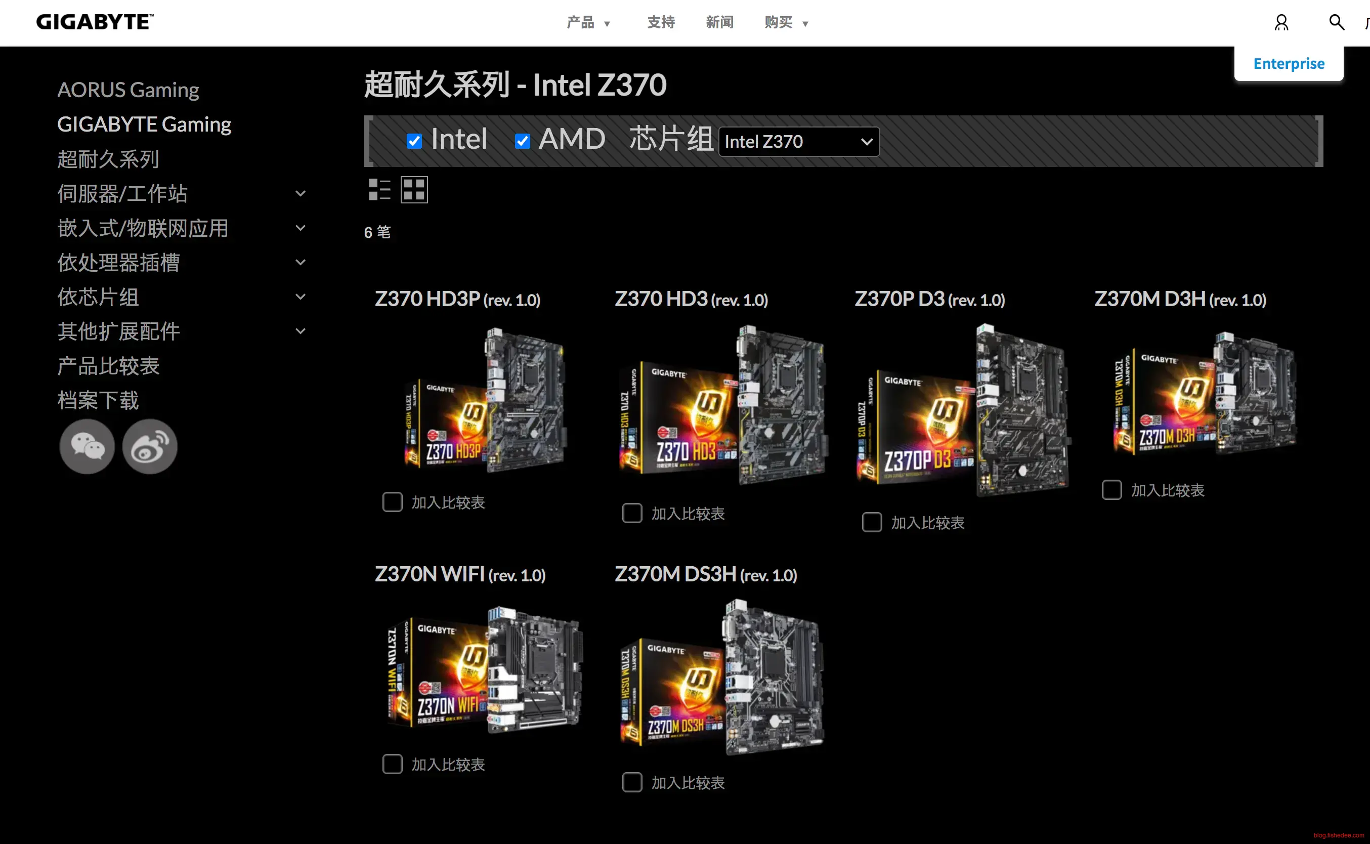 在官网上就能看到同一个芯片组不同型号的区别了。一般来说,越是排在前面的,越高级。