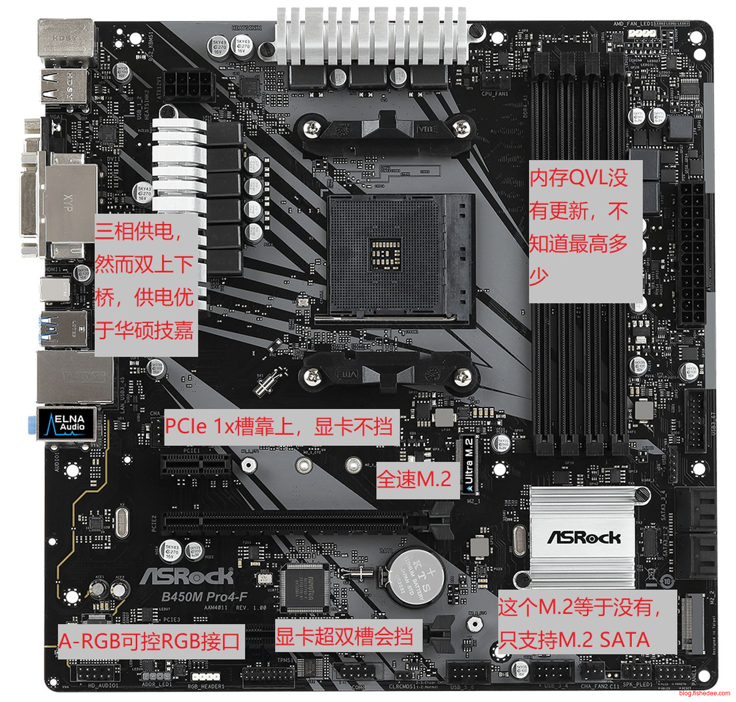 华擎的B450M Pro4-F,显然是并联电感设计,3相供电,但是每相配2个MOSFET,属于强3相供电。每相=2组MOSFET+2个电感+1个电容的设计。
