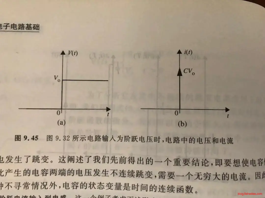 得到\(i(t)\)是一个冲激函数,积分值为\(CV_0\),冲激函数的特点是