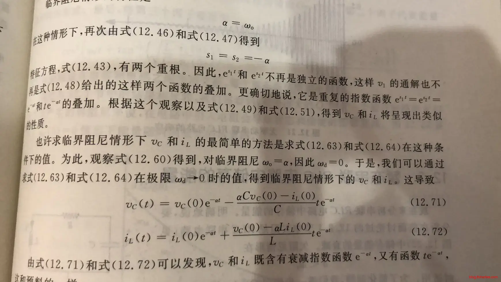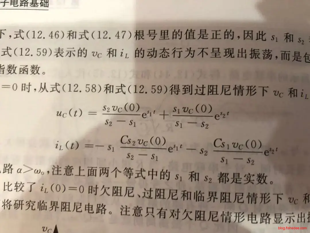 如果电路是双电容,或者双电感的时候,我们一样可以列微分方程来解决这个问题。但是,这个微分方程的特点是,它的复指数方程总是有两个不同的实数,所以,电路总是展示为过阻尼状态。而没有像RLC状态一样,出现震荡的情形。