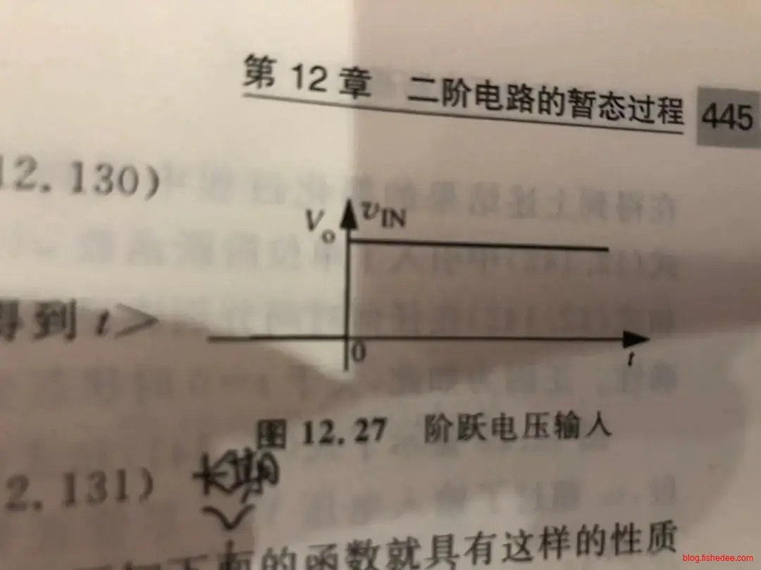 当电压是跃阶输入,就是以上方程的时候,根据公式