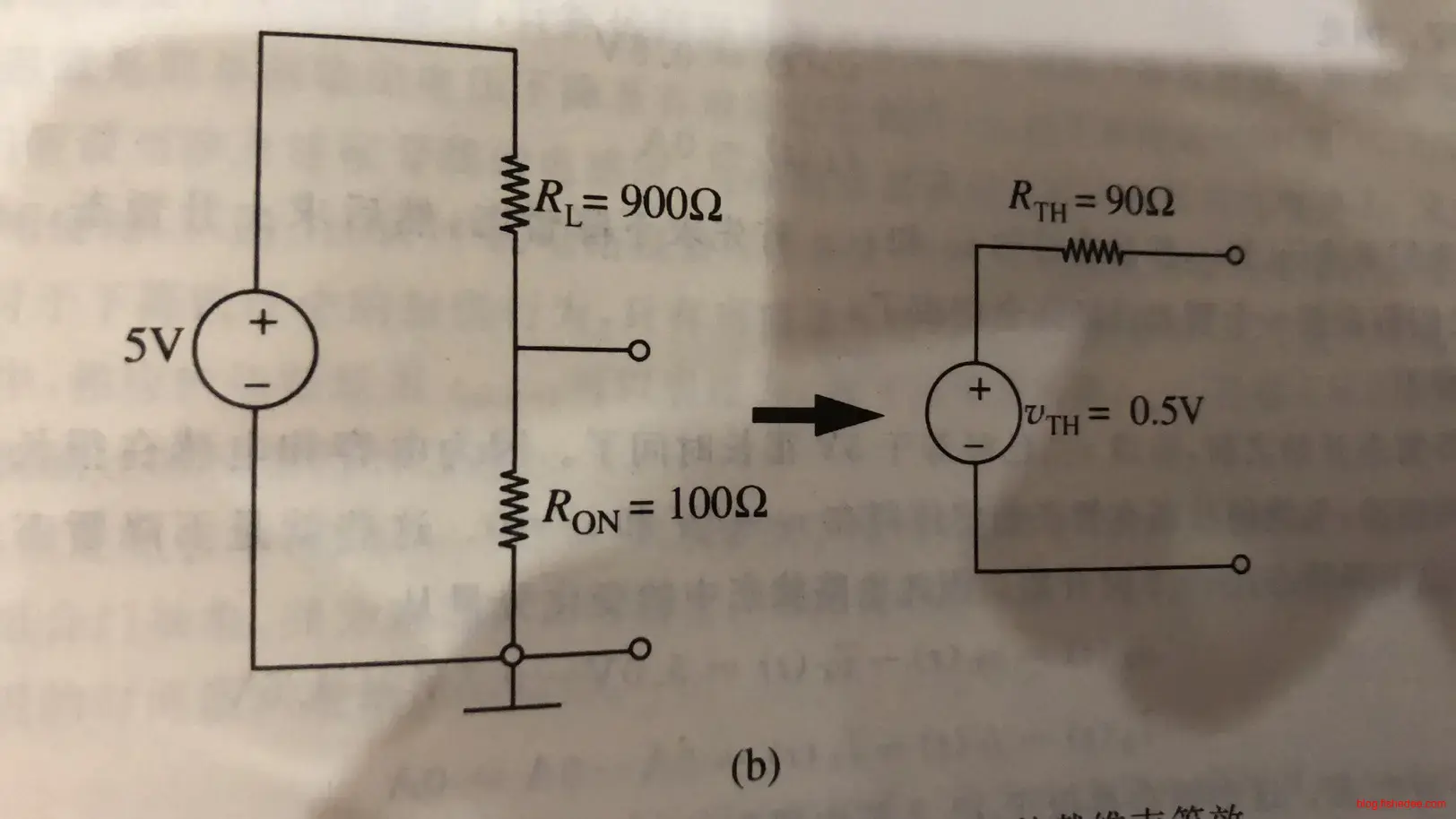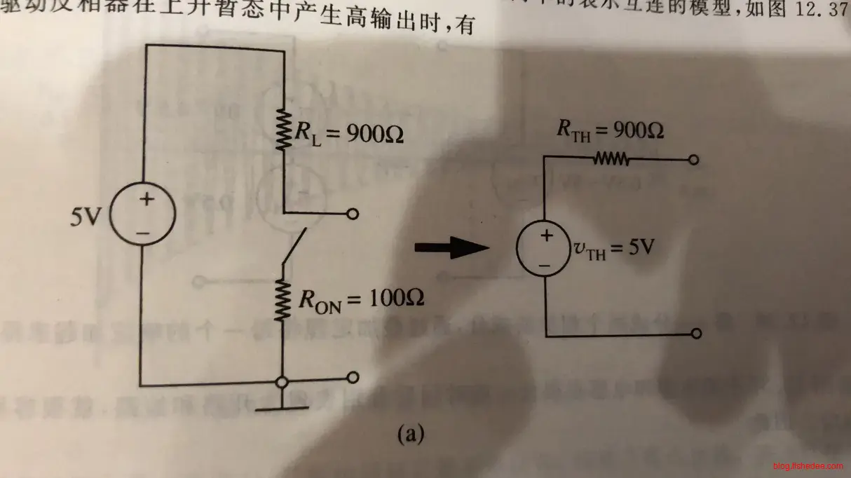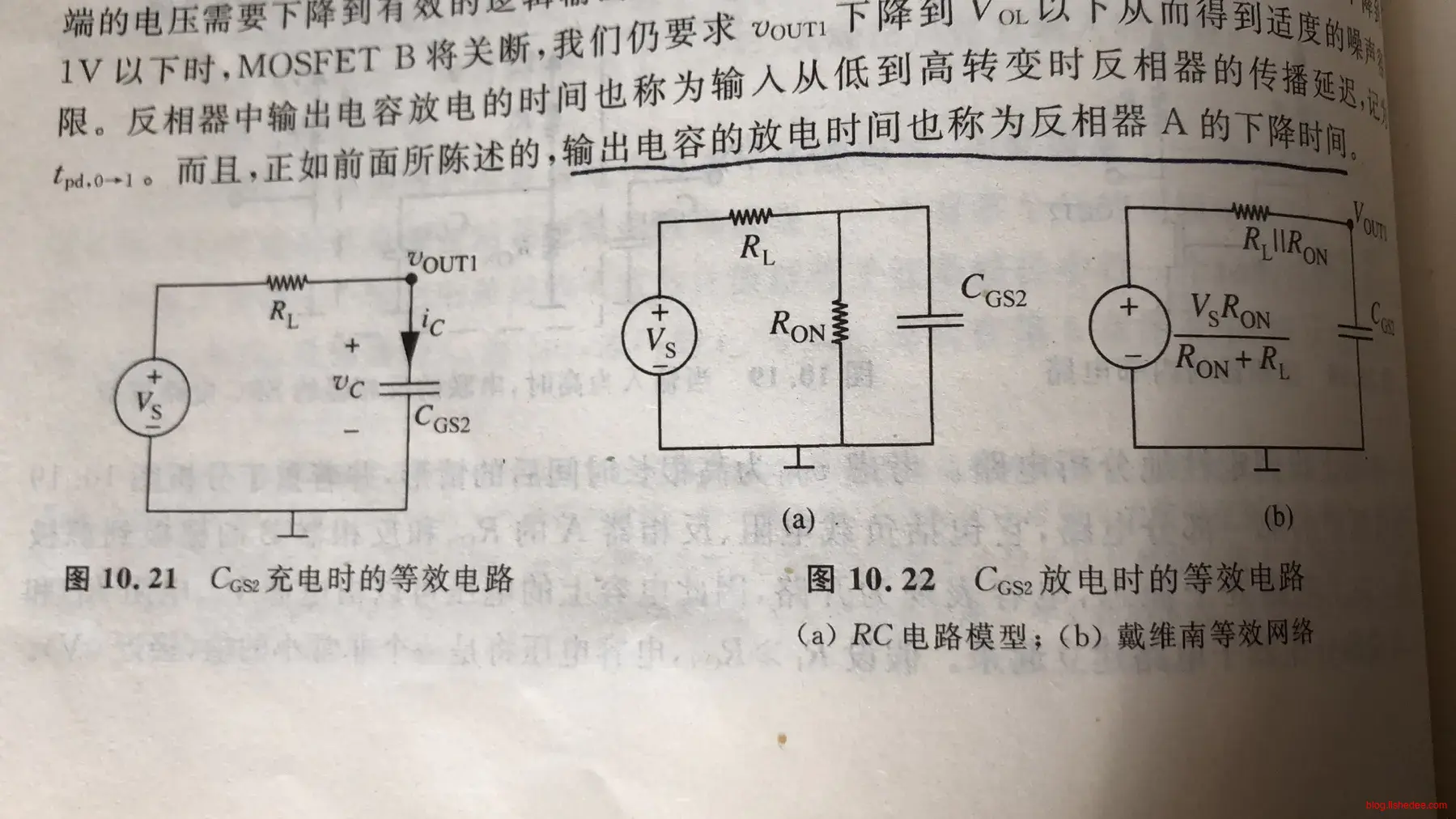 下降时间,就是从5V下降到\(V_{OL}\)的时间。注意,这相当于电容初始状态为\(5V\),使用b图下的等效电路的结果。
