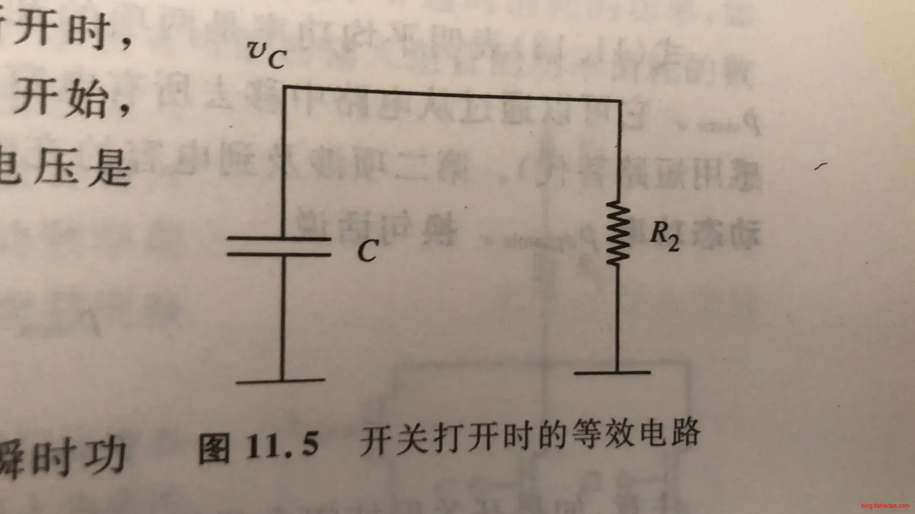 这是一个电容,直接连接一个电阻,电容的初始电压非零,为\(v_C(0)\),求\(v_C(t)\),那么我们有: