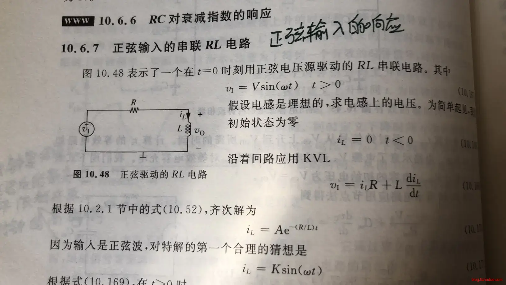 我们在串联RLC电路加入了电源,组成了有驱动的串联RLC电路。我们依然列微分方程