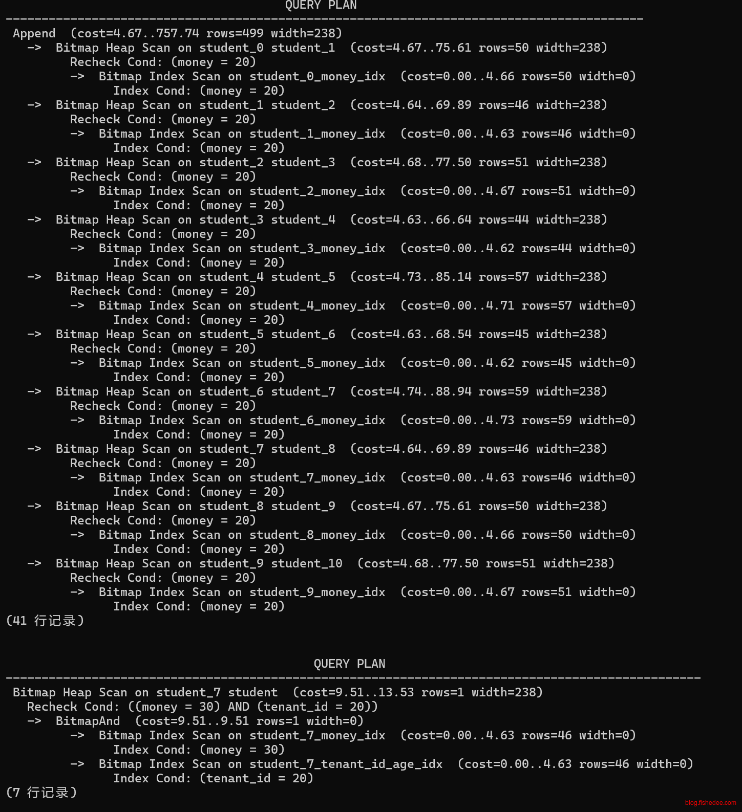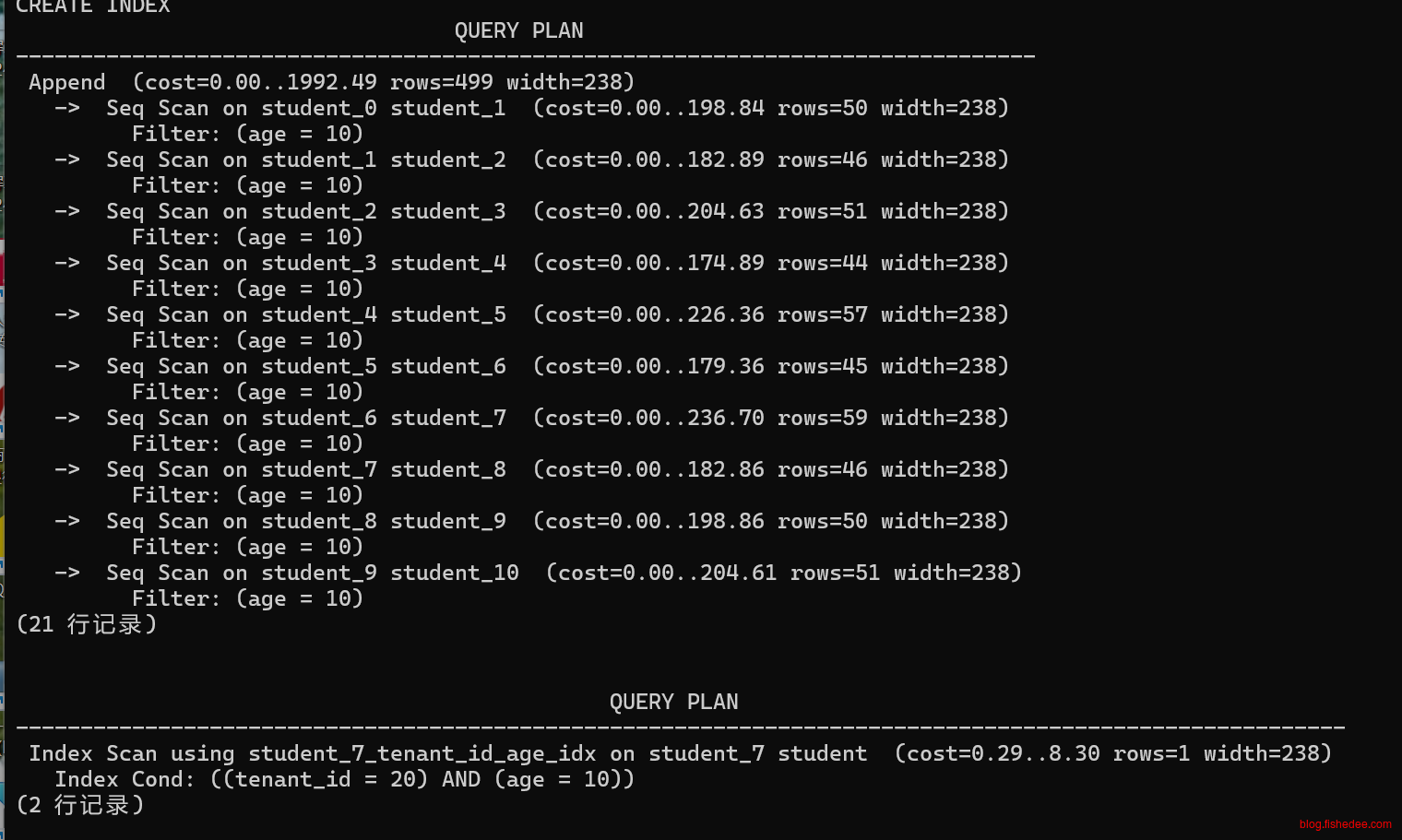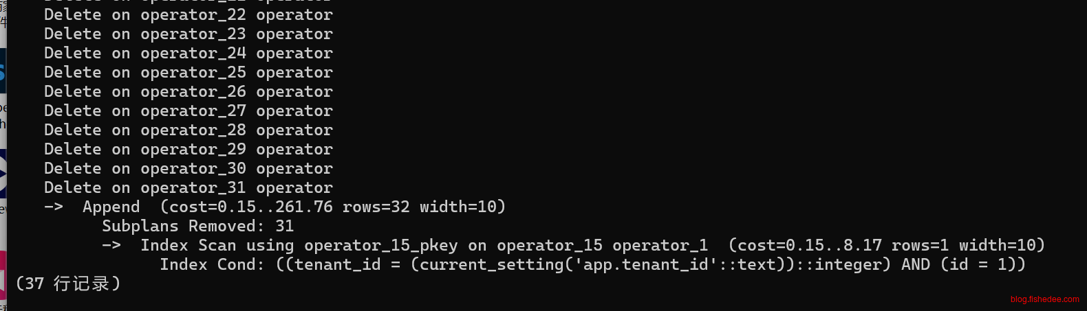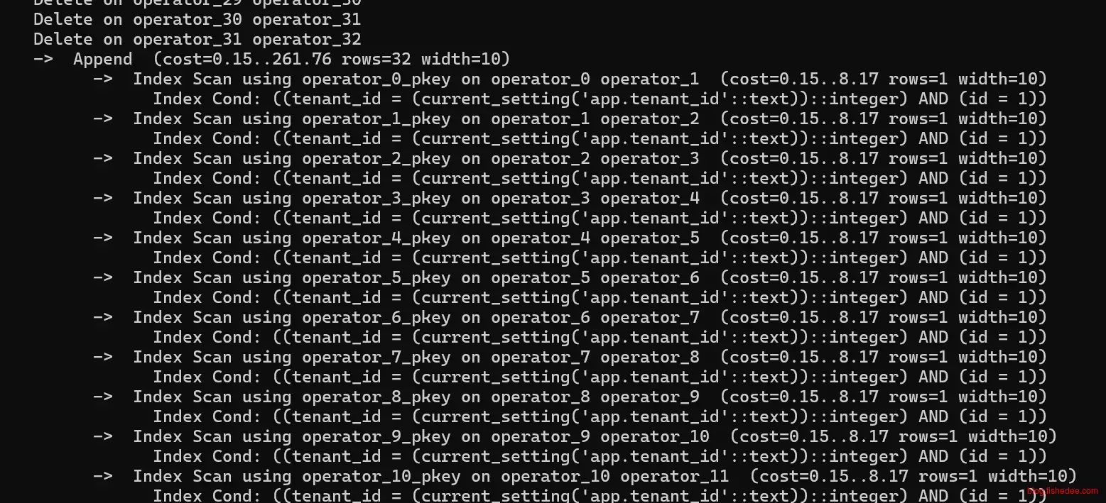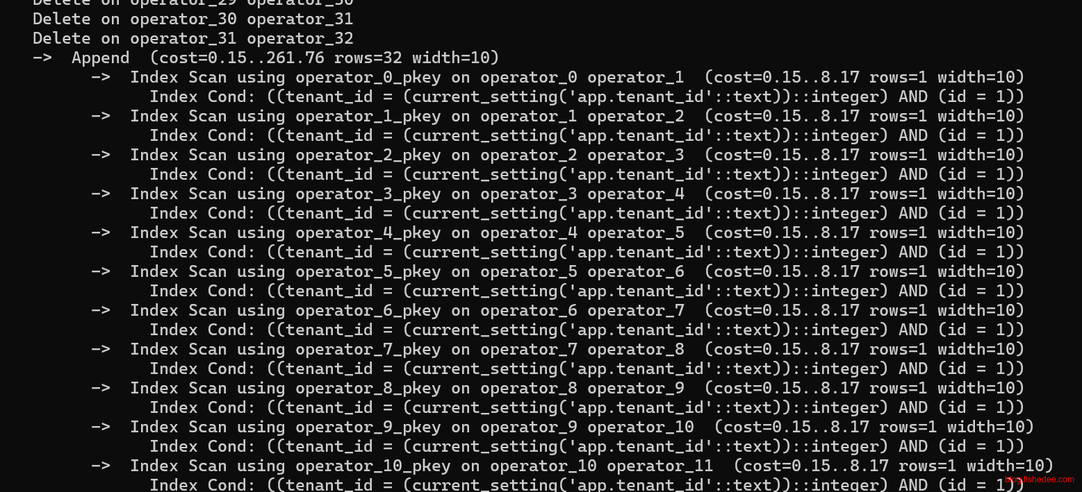 Execution Time: 7.494 ms第一条SQL是7.494 ms,速度较快,没有tenant_id过滤