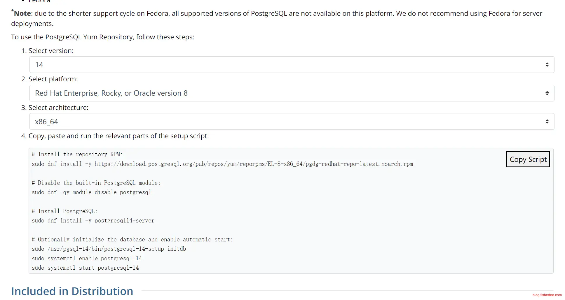 sudo dnf install -y https://download.postgresql.org/pub/repos/yum/reporpms/EL-8-x86_64/pgdg-redhat-repo-latest.noarch.rpm