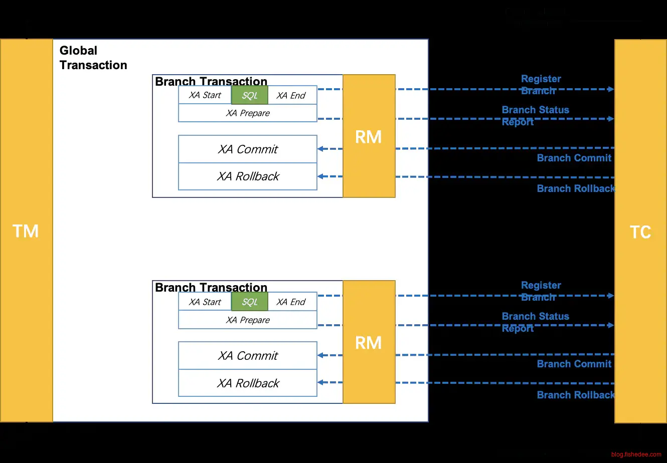 - 收到TC的分支提交请求,包括有XID和BranchID