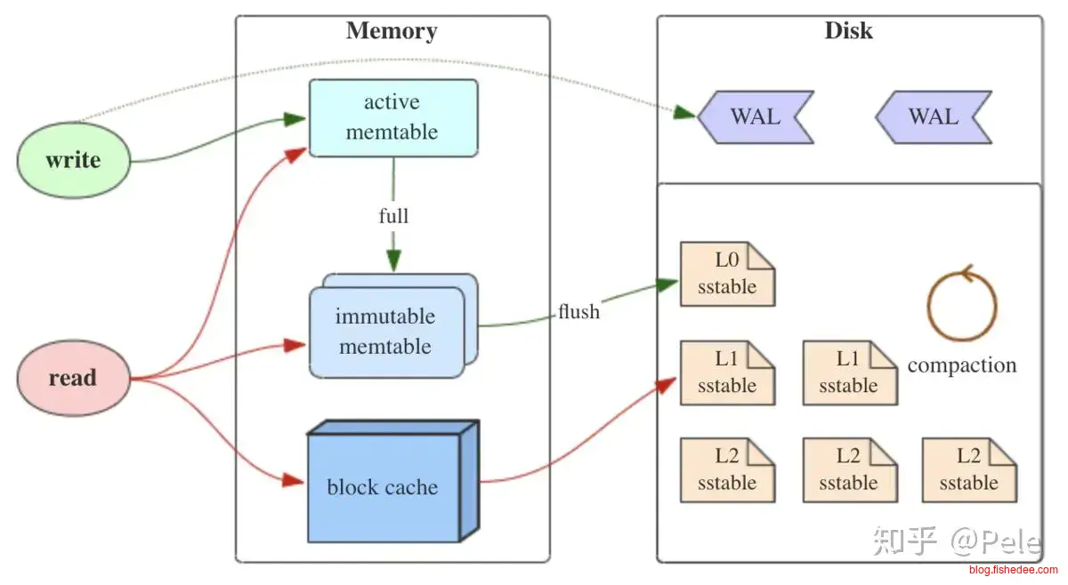- 数据单线程写入内存的平衡树(MemTable),并且写磁盘的WAL文件,这保证了崩溃时内存不丢失。