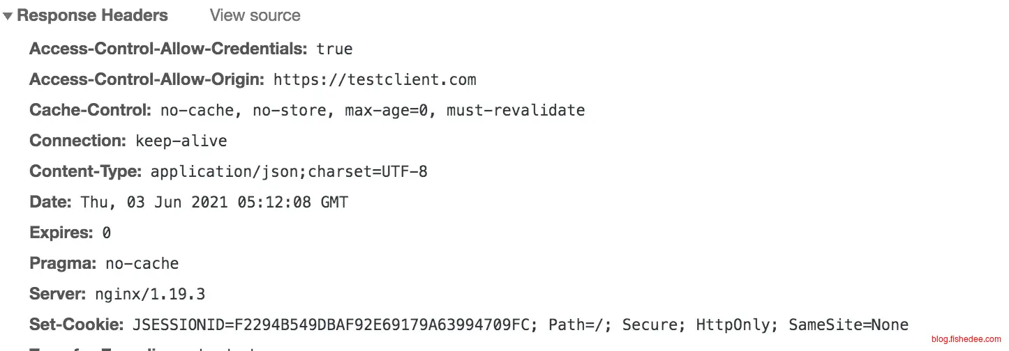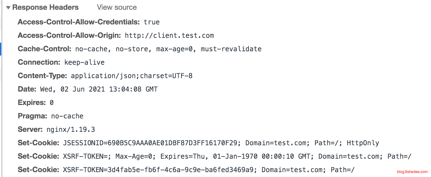 Set-Cookie: JSESSIONID=2C8346A1EBD87CB442F89DCD1E334BFA; Domain=test.com; Max-Age=3600; Expires=Wed, 02-Jun-2021 11:48:58 GMT; Path=/; HttpOnly