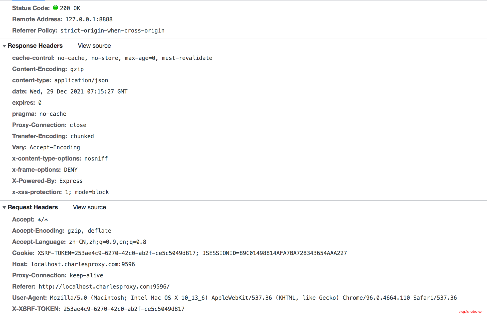 另外一种方法,是后端构造一个XSRF-Token值,写入到Cookie返回到前端。注意,因为POST请求需要XSRF-Token值,所以在调用POST请求之前,你需要保证用GET请求拿到页面的XSRF-Token值。