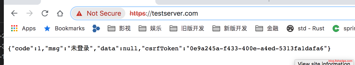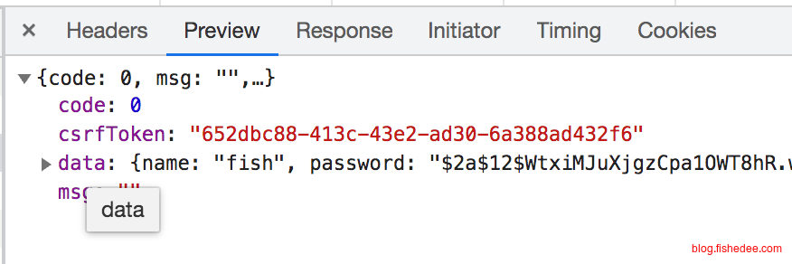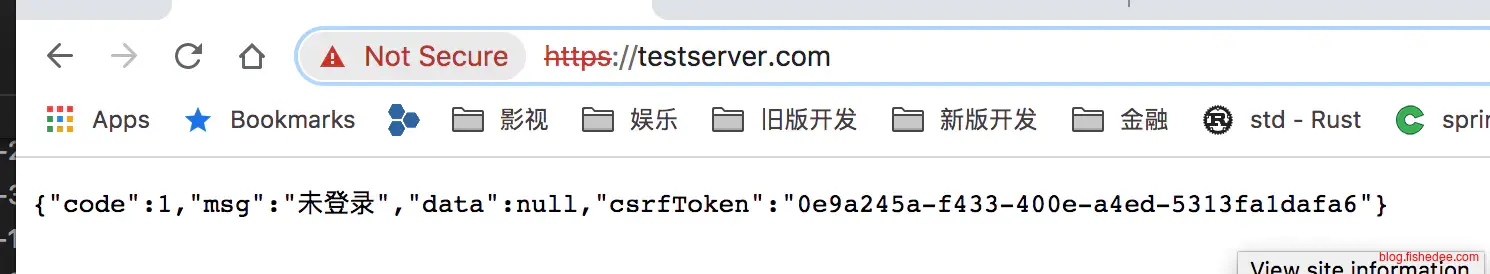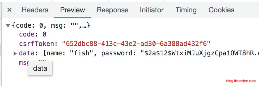 }另外一种方法,是在前后端分离的网站中,返回结构体增加一个csrfToken字段。前端收到这个字段后存放到本地变量,然后每次提交请求到附带这个字段就可以了。