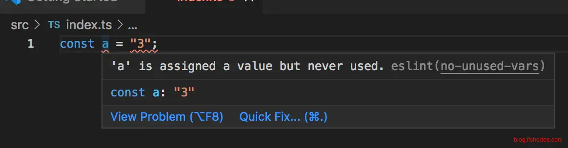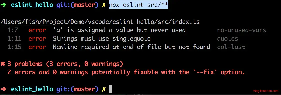 npx eslint src/**然后执行eslint,它就会提示变量a声明了,但是没有使用过。