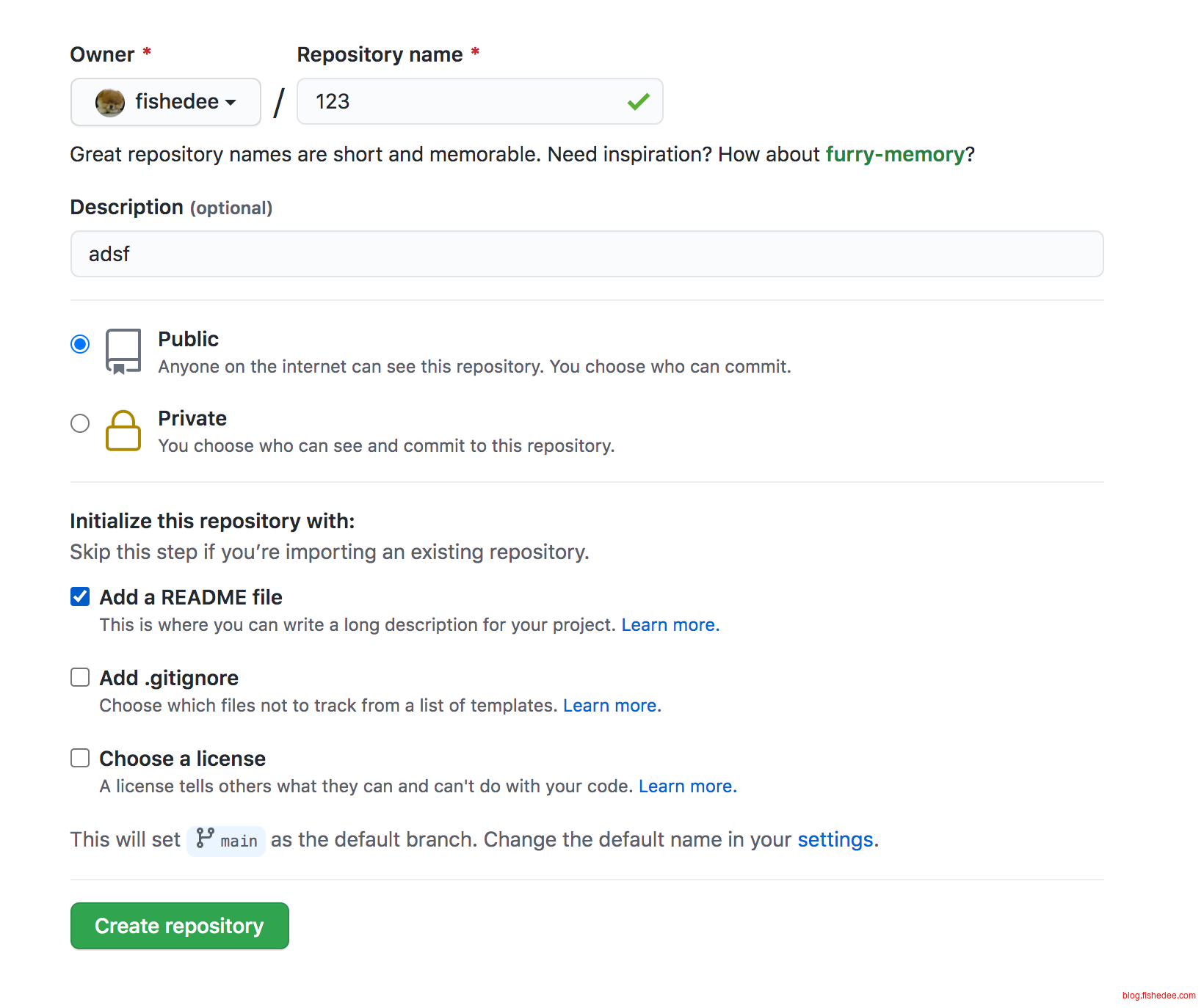 我们首先创建一个仓库,名字为gitdoc