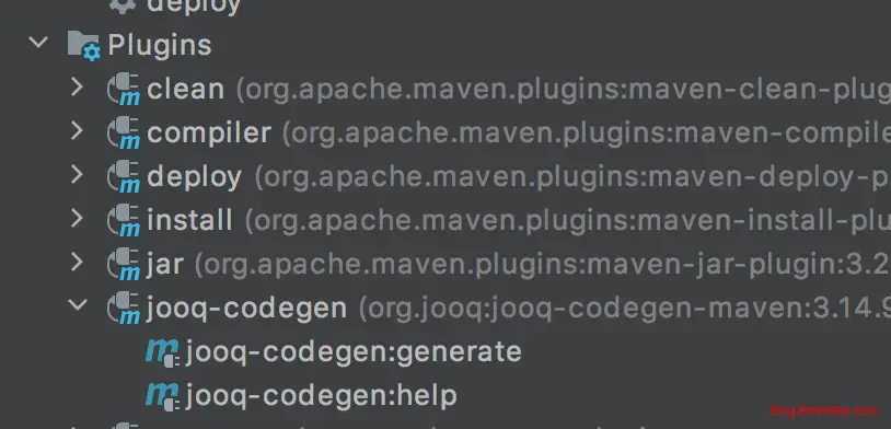 在Maven中,指定jooq-codegen:generate就能生成代码了