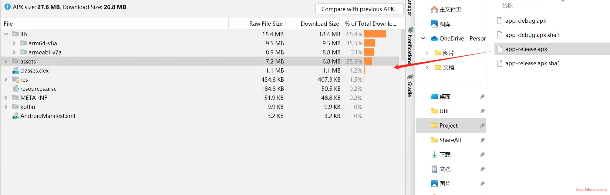 直接将apk文件拖入Android Studio就能分析apk文件大小的来源了
