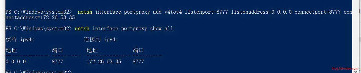 netsh interface portproxy show all然后在Windows里面做8777端口的端口转发