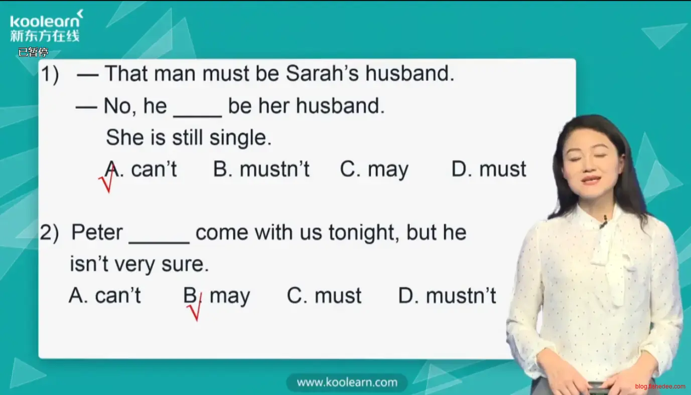 - 口语中指代人物,像one指代物品一样,That must be Kate.It can’t be.