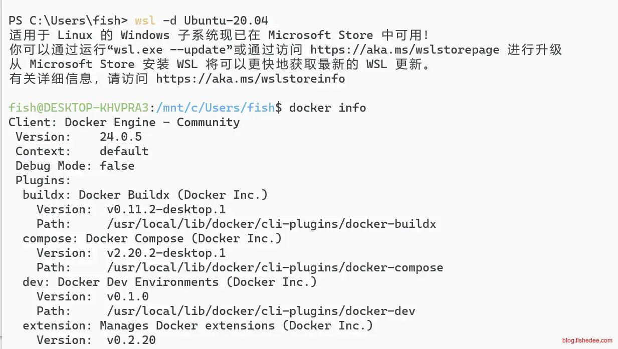 这个时候,进入WSL2,输入docker info,可以看到docker信息