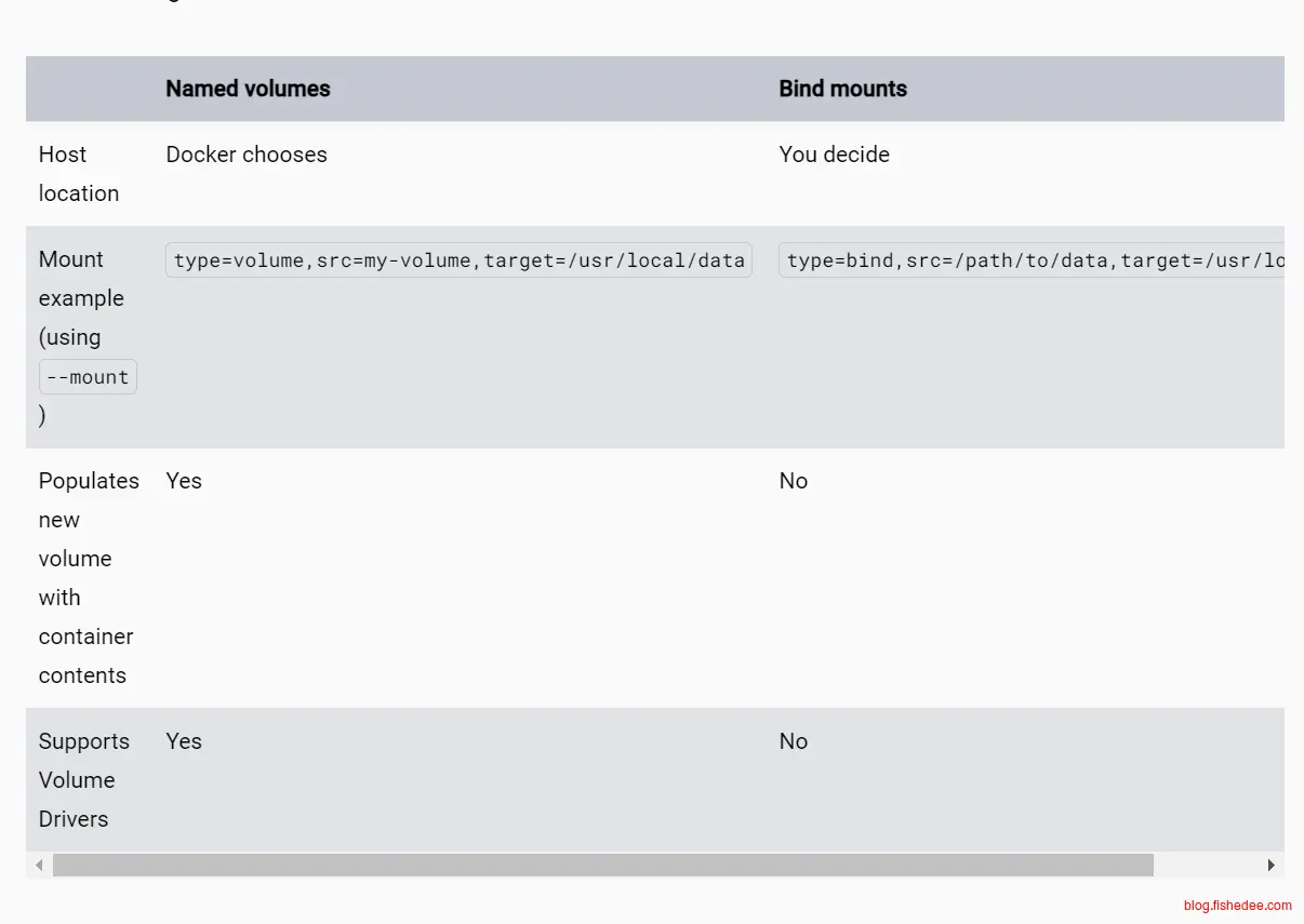 docker持久化的方式有两种,volume(卷)和bind(绑定)。区别如上: