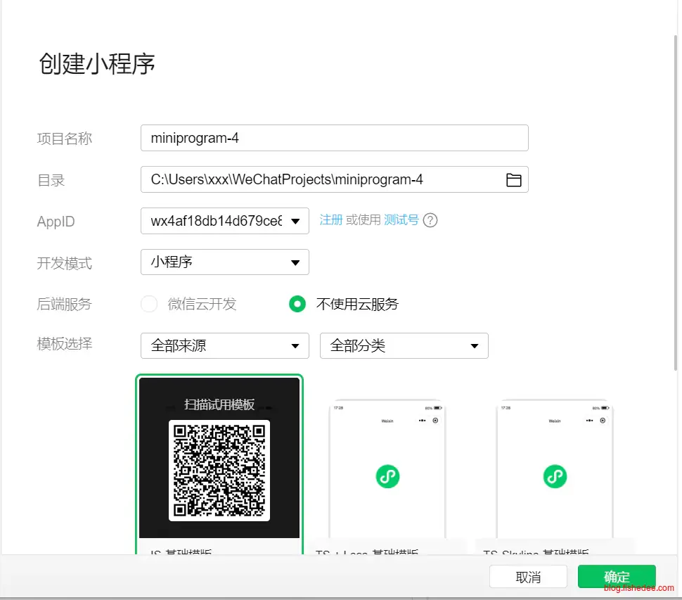 新建项目,选择测试号的AppId,我选择了TS-基础模板