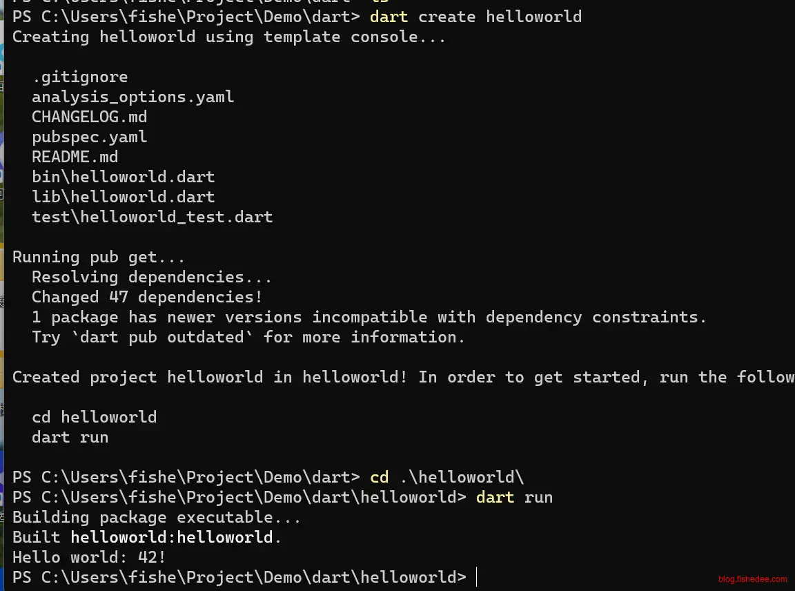 test: ^1.24.0pubspec.yaml,项目的配置文件,修改该配置文件,需要注意删掉.dart_tool,重新编译后才能生效。其中,name是项目名称,也是bin文件中的入口名称。