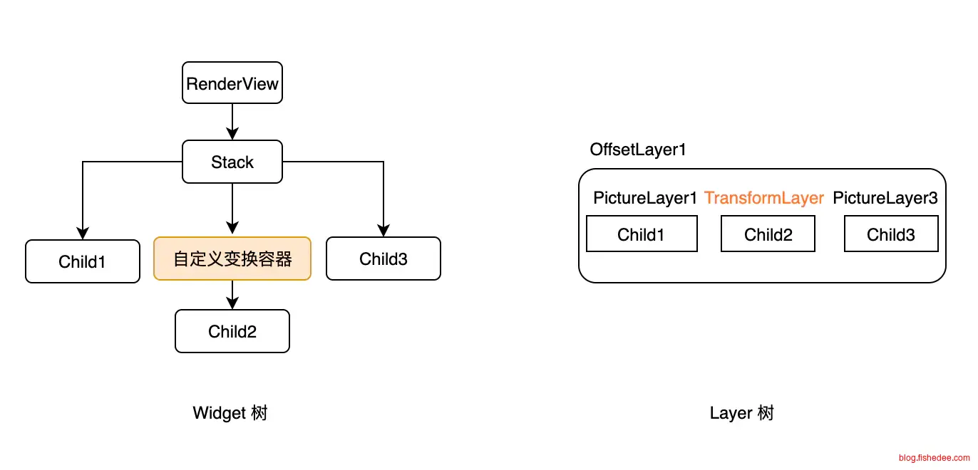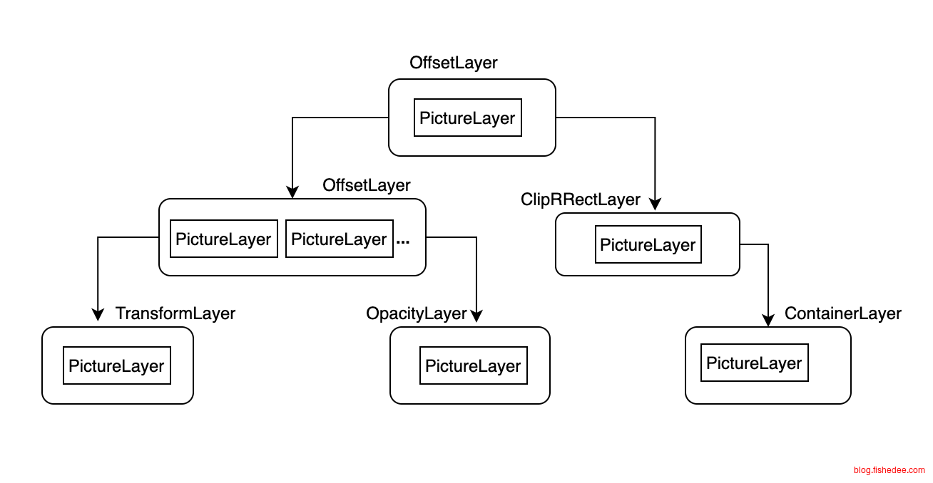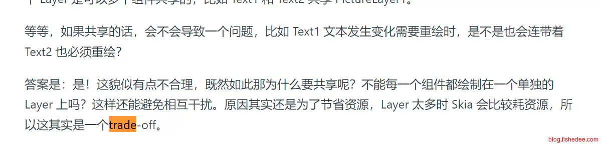 }compositeFrame就是将多个layer合并起来而已,叠起来一起输出。但是缓存paint结果,也就是创建layer实在过于昂贵(内存占用大)。所以,在默认情况,flutter会寻找哪些地方是可以尽量避免使用layer,而使用canvas的transform来代替。正就是flushCompositingBits的工作。
