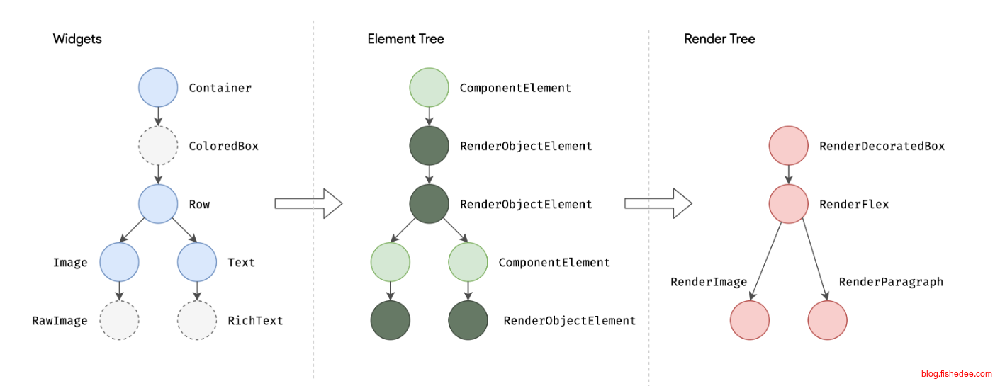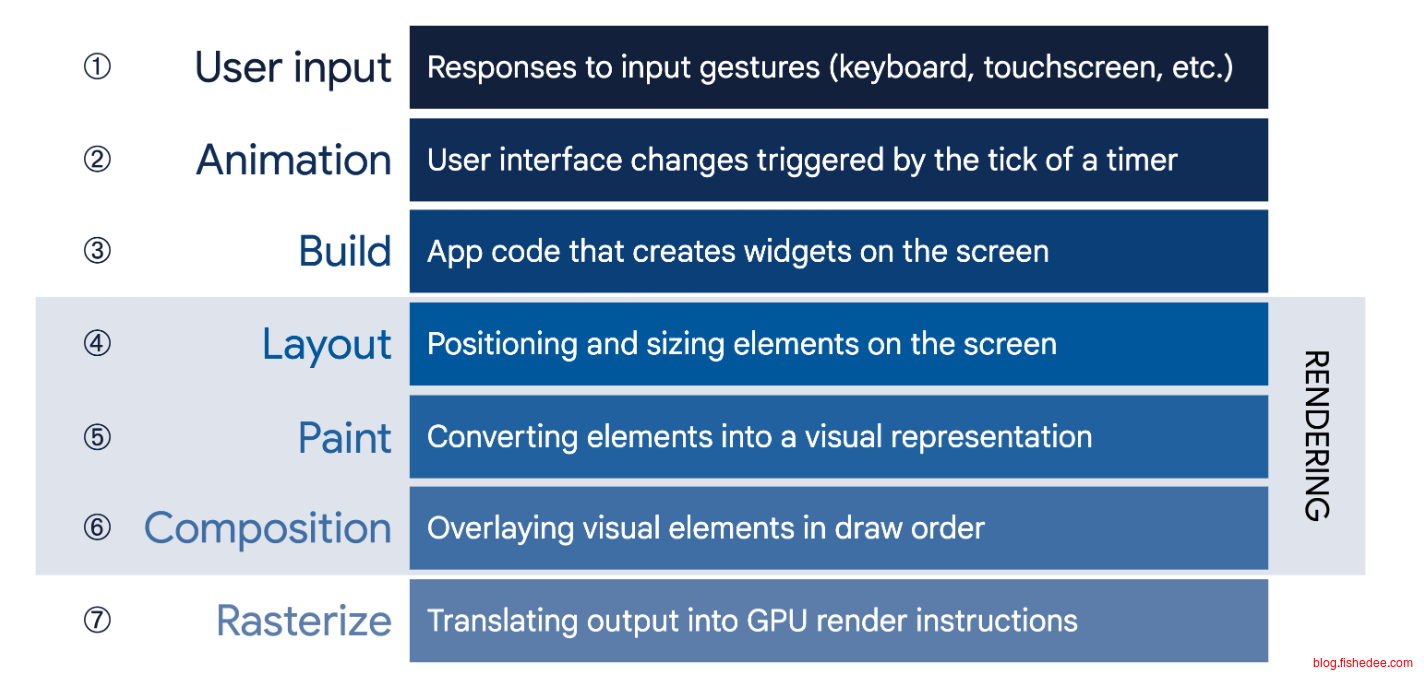 - 自绘UI实现跨平台,例如flutter,优点是,大幅避免了消息序列化与反序列化的overhead,跨端渲染一致性比较高,兼容性比较好。缺点是,无法利用Native平台的优化,就像flutter上的滑动动画效果与原生依然比较弱,对于较前沿的环境(AR,MR),flutter很难提供及时的支持。