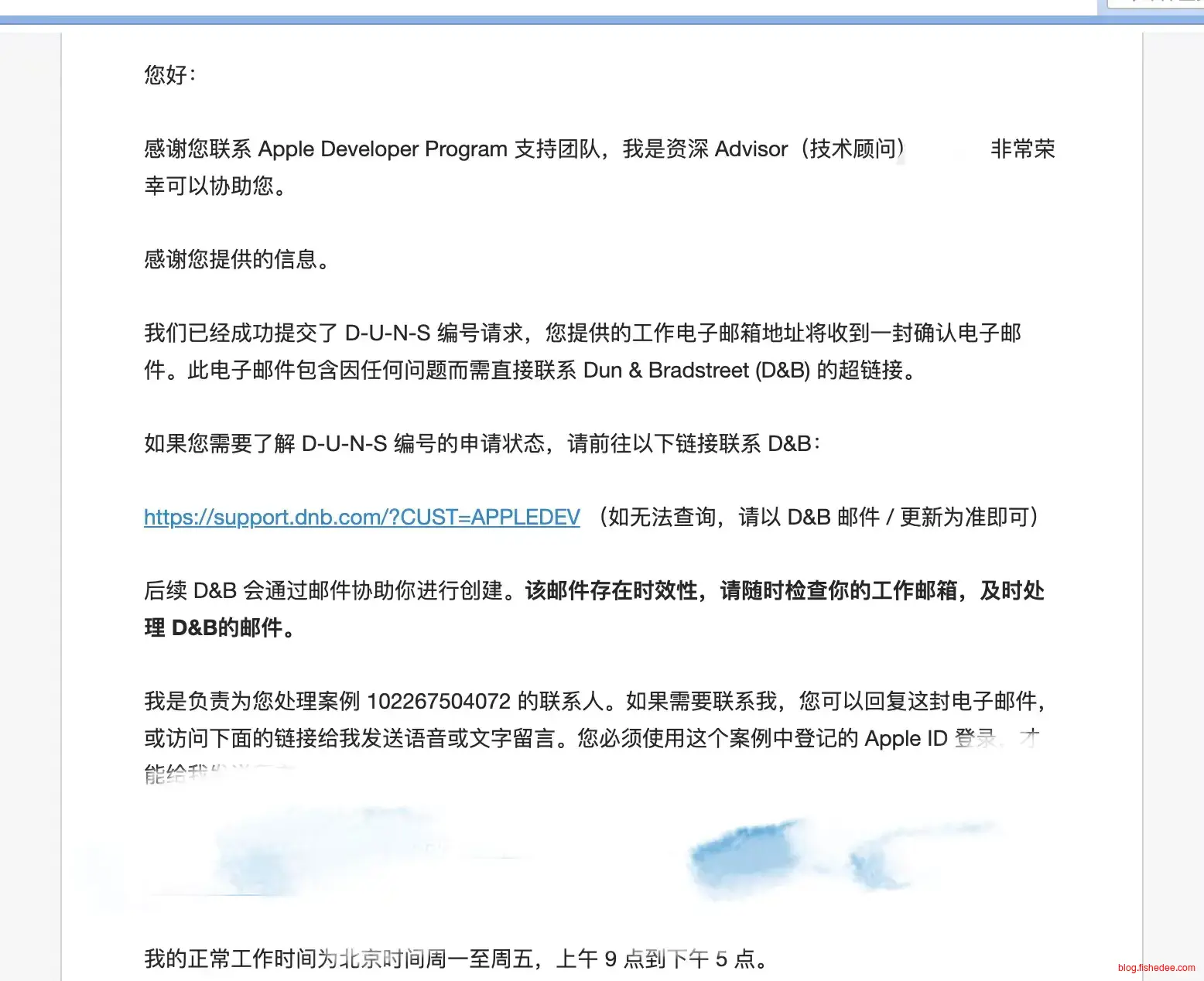 然后Apple就会发邮件通知你已经提交DUNS编码的创建请求。