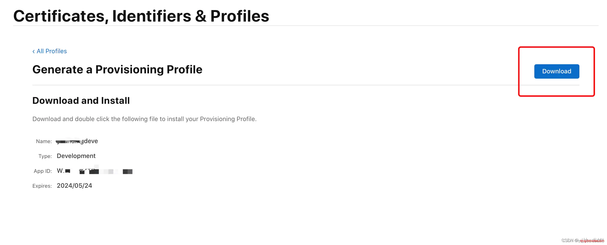 最后点击 “Download” 将描述文件下载到本地(文件后缀为 .mobileprovision)
