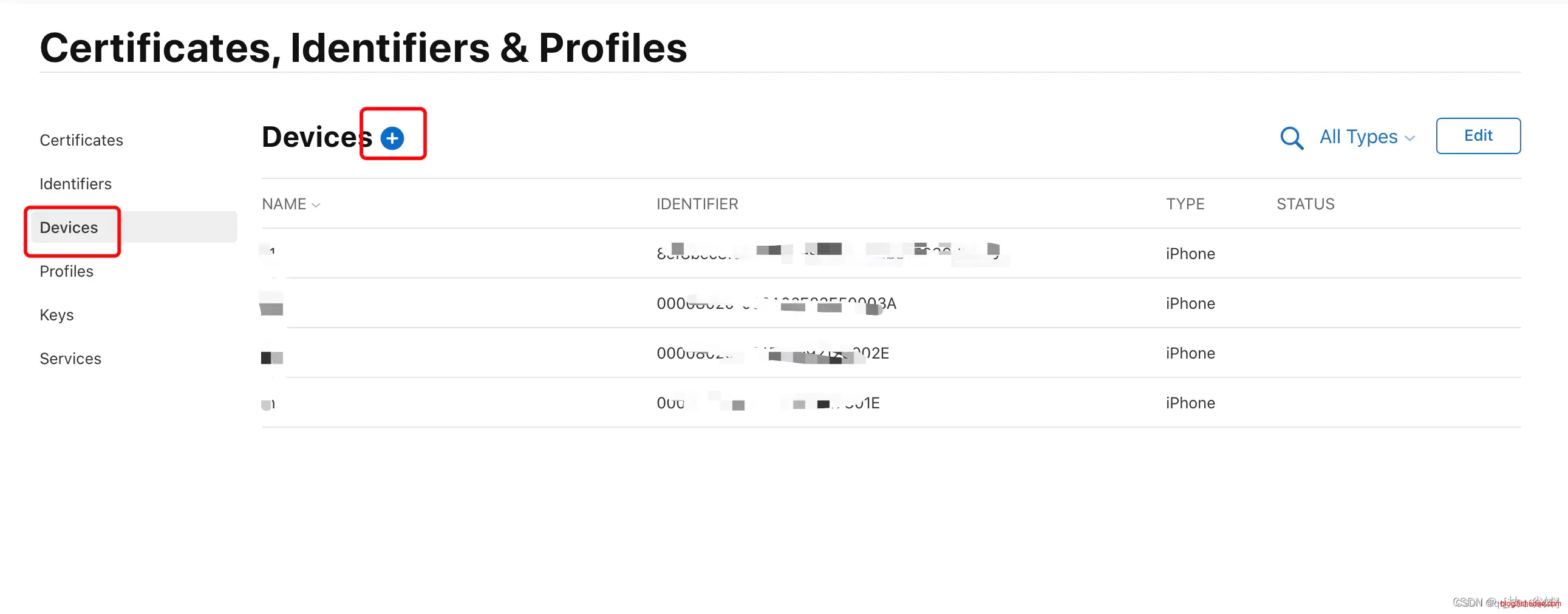 在生成描述文件之前,需要先添加调试设备(iPhone 、iPad)