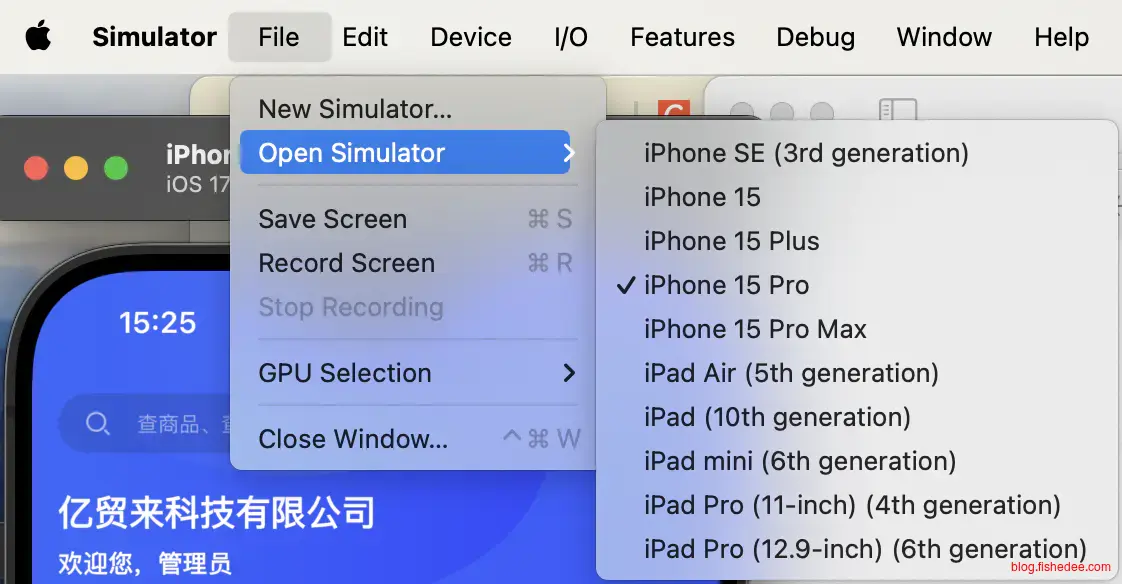 打开模拟器以后,可以在左上角选择Simulator的类型