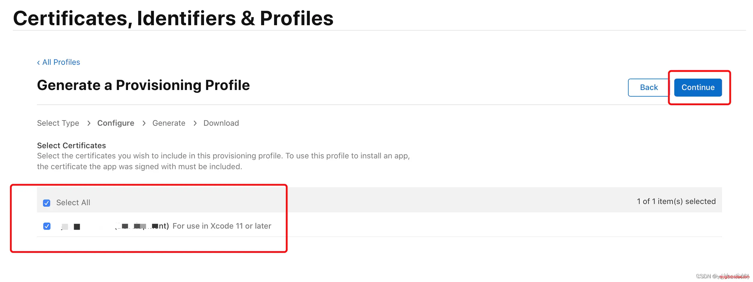 选择Certificate证书,这里建议直接勾选 “Select All”,点击“Continue”