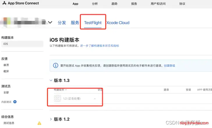 上交以后,在TestFlight就能看到你的App