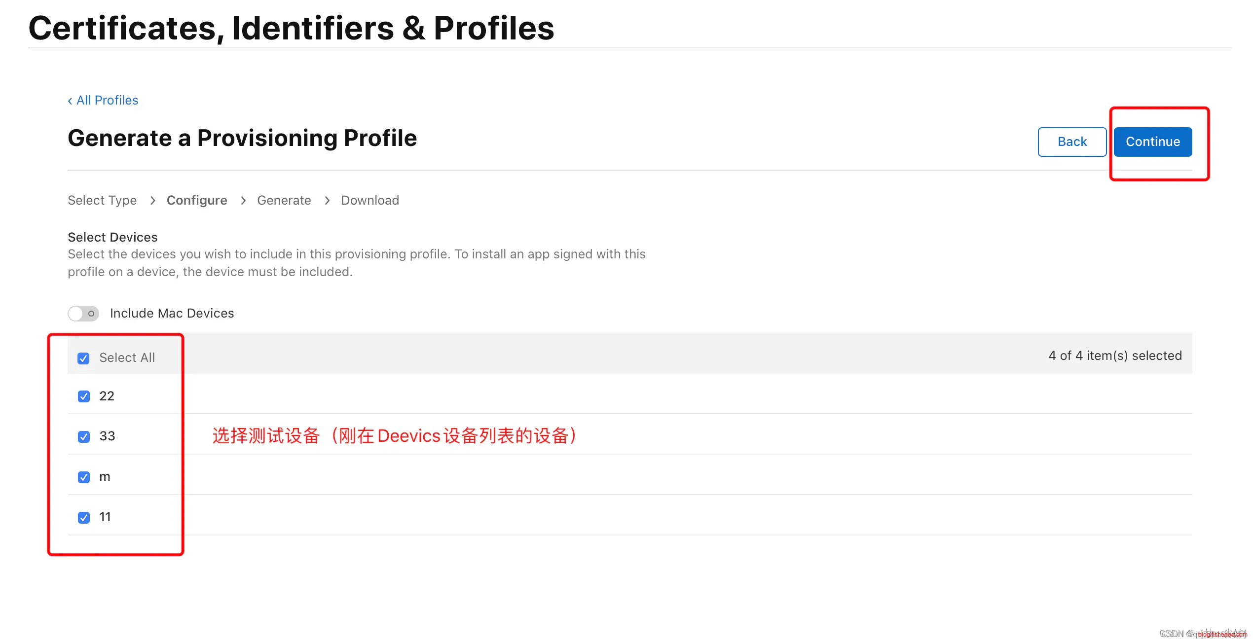 选择授权调试设备,这里建议直接勾选 “Select All”,点击 “Continue”